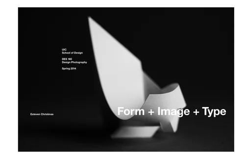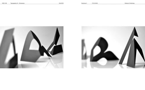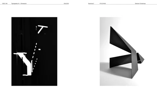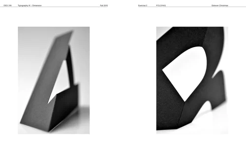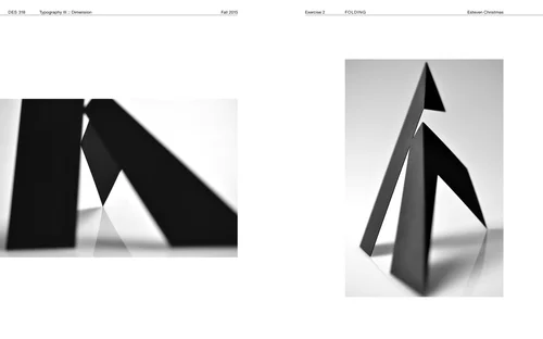 This project engages photography and studio-lighting techniques to describe specific characteristics of abstract 3D form produced from folded paper. Divided into three segments, the process involves model-making; studio photography; and integration of typography and image.