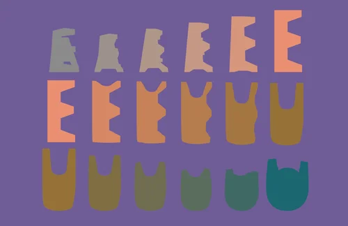 An typographic investigation were the shapes, colors and transition between vowels are explored to create two generations of font styles.