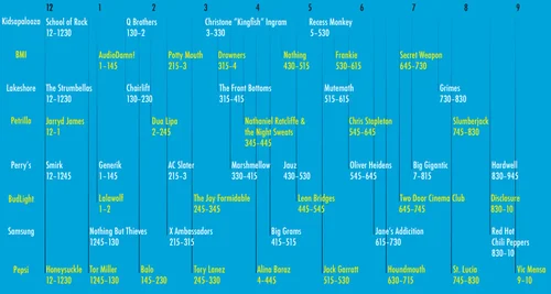 The experience of Lollapalooza is an event much like deciphering a code; an evening spent trying to find out what to do or where to go. The date and name of event divided into eight to represent the eight stages. Gradients used to show individual values and represent the passing of time just as performers are shown on different stages as time passes. Colors inspired by the fusion of evening hues and used to differentiate the pass, schedule and spirit page from each other. The design gives the people an unconventional experience, which is always the case at Lollapalooza.