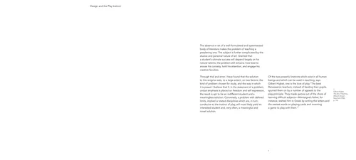 Spreads from a book that was designed to show our understanding of typography, grid, composition and relationship between photos and text. The project is an essay by Paul Rand.